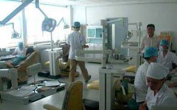 その辺りでの歯科治療は、昔ながらの電気エンジンによる切削で、材料も当時の雰囲気である。中国は、歯科治療においても、大変大きな技術レベルの差が存在する。これが、許されているところが、中国かもしれない。人口13億人の国ならではの歯科事情であろう。補綴物は、ニッケルクロム合金が主で、メタルボンド、クラウン、金属床のほとんどに使用される。最新の技工器材も導入されているが、プレシャス材料は極めて少ない。最新の歯科技工技術の導入が今後の課題のようである。