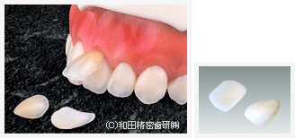 金属を使わないセミラックスだけでできたつめものです。より自然な色合いと形を再現します。永年の使用にも変色せず、健康的な白い歯の輝きで天然歯の美しさを保ちます。